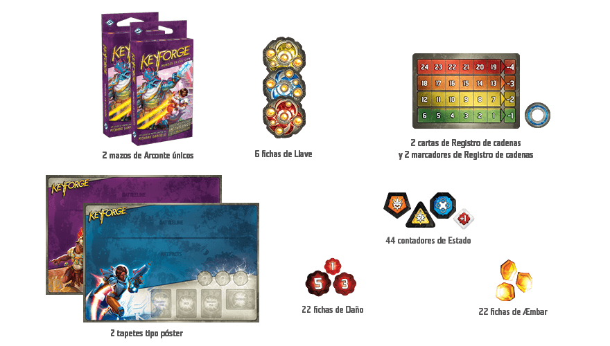 Esto es todo lo que incluye la Caja de inicio para 2 jugadores de KeyForge: Mundos en Colisión.