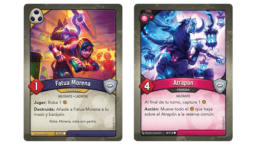 Falsa Morena ha sido una criatura habitual desde el primer conjunto de este juego, La Llamada de los Arcontes. Sin embargo, con Mutación Masiva, se produce un nuevo giro con la introducción de Fatua Morena (Mutación Masiva, 255). Cuando se destruye, Fatua Morena se añade a tu mazo y se baraja en lugar de volver a tu mano y además roba un Æmbar de tu adversario cuando se juega. O, puedes encontrarte en un mazo con Atrapón (Mutación Masiva, 14), una versión mutante de Atracón. Atrapón captura Æmbar más lentamente, pero su potencial es mucho mayor y, como Acción, puedes mover todo su Æmbar a la reserva común.