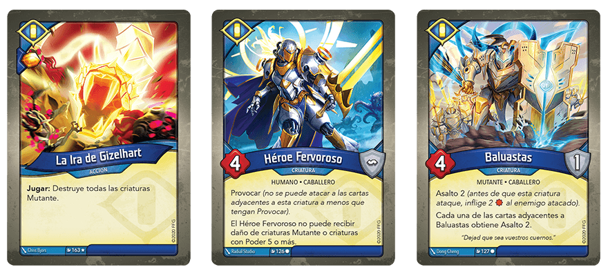 Las nuevas cartas como Héroe Fervoroso (Mutación Masiva, 126) abanderan una cruzada contra los mutantes. Teniendo la palabra clave Provocar e inmunidad al daño infligido por Mutantes y criaturas de alto Poder, este héroe seguro que protegerá el resto de tu frente de batalla. También puedes jugar a La Ira de Gizelhart (Mutación Masiva, 163), una acción que destruye todas las criaturas Mutantes en juego. Aún así, pese a su fervor, la Casa Sanctum no está a salvo de las mutaciones. Cuando criaturas poderosas como Baluastas (Mutación Masiva, 127) se incorporan a la batalla, incluso la Casa Sanctum acaba por flexibilizar sus estrictas líneas rojas.