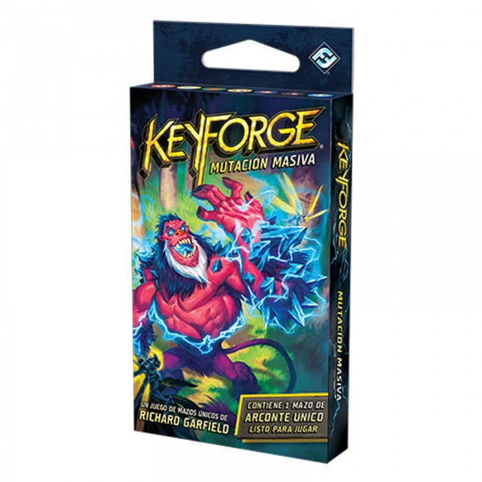 El conjunto de cartas de KeyForge crece y se expande una vez más con Mutación Masiva, dándote acceso a miles de millones de posibles mazos completamente únicos, cada uno merecedor de su propia estrategia que debes definir. Mutación Masiva parte de un conjunto de 422 cartas para sus mazos, con más de 250 cartas totalmente nuevas y, con la introducción del Æmbar oscuro, ¡la mutación se extiende sin control! Te encontrarás con nuevas y extrañas versiones de personajes que te resultan ya familiares, criaturas gigantescas tan descomunales que no caben en una sola carta y el triunfal regreso de Casa Sanctum.