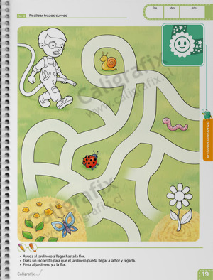 Trazos y Letras 1 contiene alguna imágenes sin pintar, lo que permite que los niños y niñas puedan colorear las ilustraciones a su gusto, desarrollando así la expresión artística y la motricidad fina.