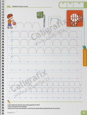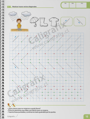 - Ejercicios grafomotrices a través de actividades lúdicas y contextos significativos. Se incorpora un formato cuadriculado y de caligrafía horizontal, lo que le permite al niño y niña orientarse en los espacios de escritura.